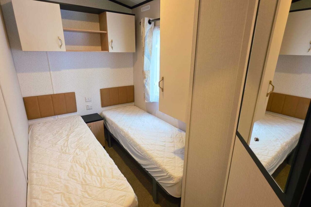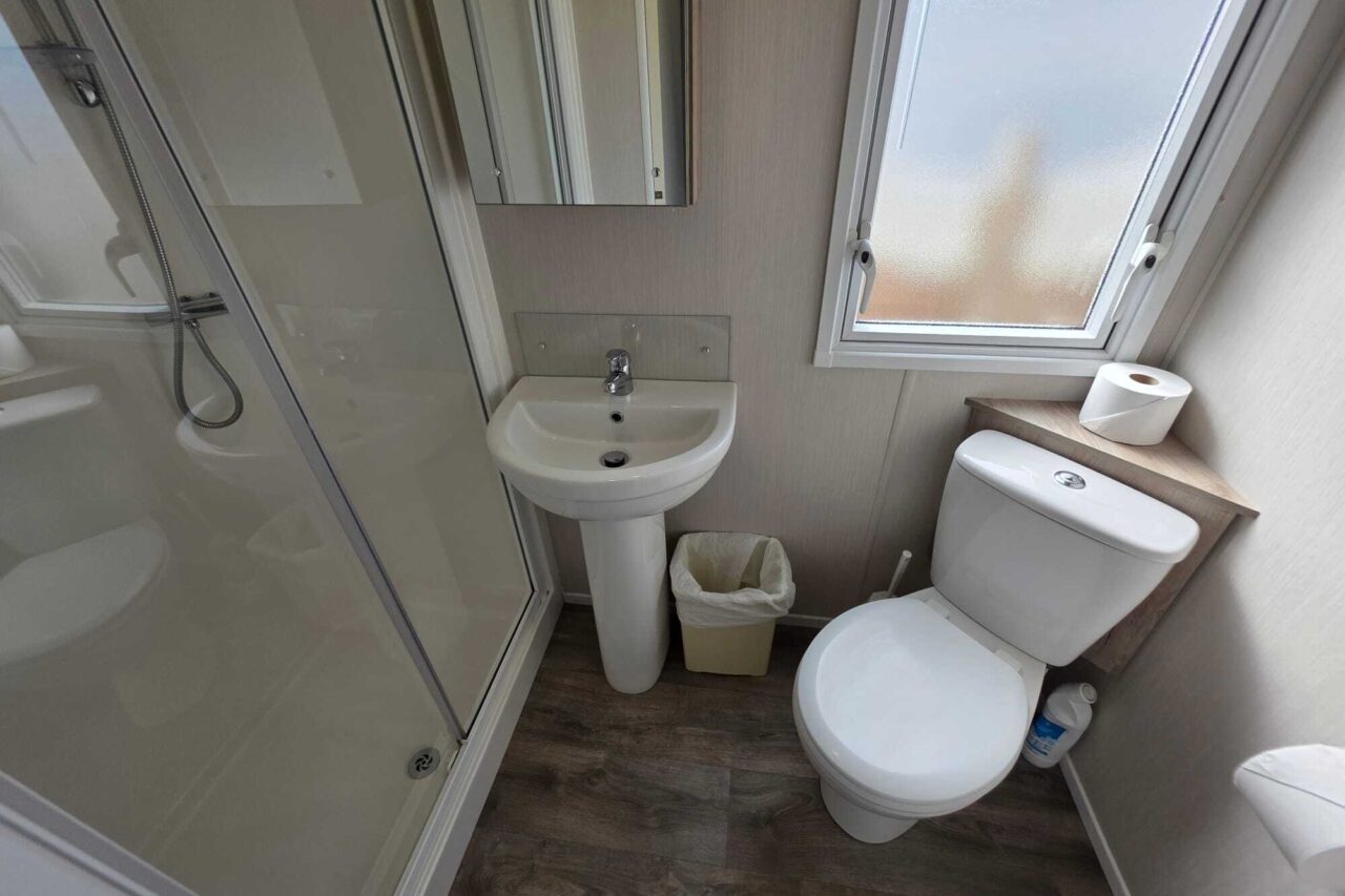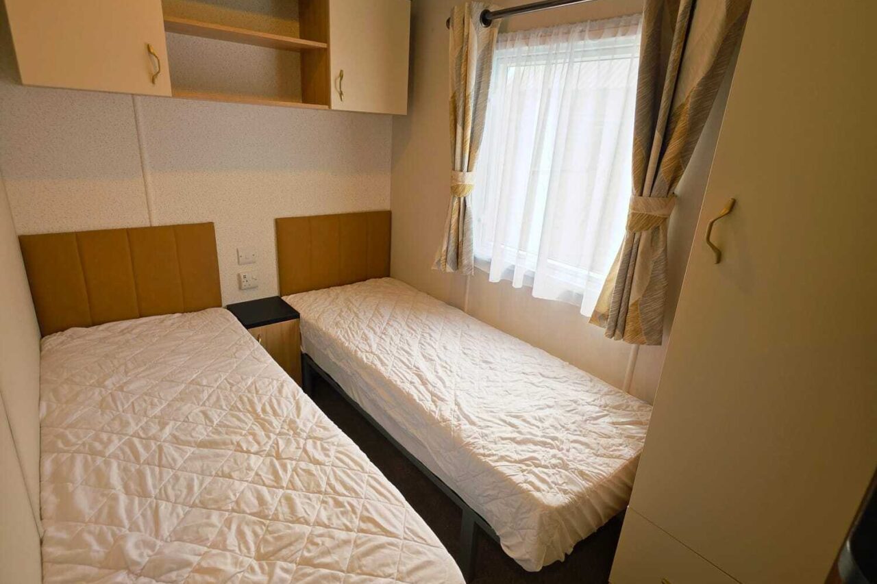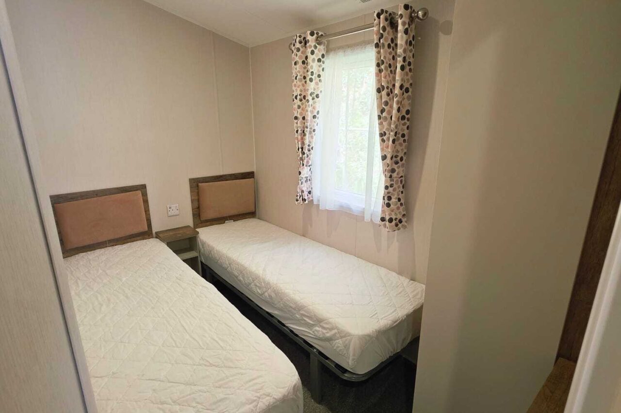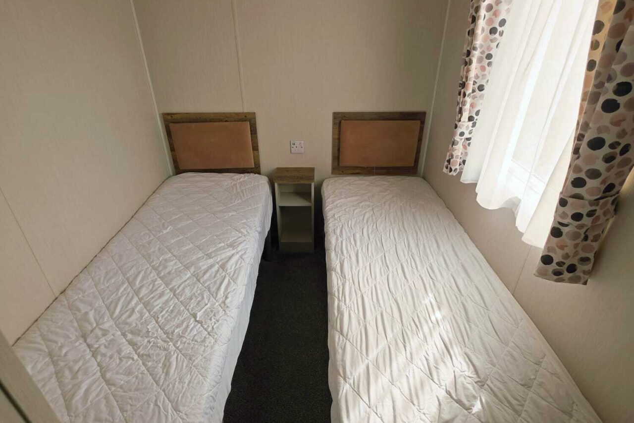 Our non-dog-friendly static caravan has 3 bedrooms. One double, two twin rooms, one WC and one bathroom.
